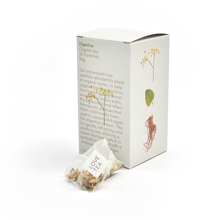 Love Teas naturopath has carefully selected this blend of organic herbs to create a tea that helps support healthy digestive function. Including fennel, aniseed and lemon balm, this botanical blend offers therapeutic qualities that have traditionally been used to support and repair the digestive system. This is a gentle, refreshing and soothing tea, offering a sweet mint base, which is perfectly balanced with a vitalising zest of ginger.