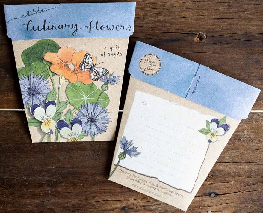 Featuring original artwork by Daniella Germain, the Culinary Flowers Gift of Seeds includes a packet of mixed seeds, a tear-away biodegradable plant label and sowing instructions.